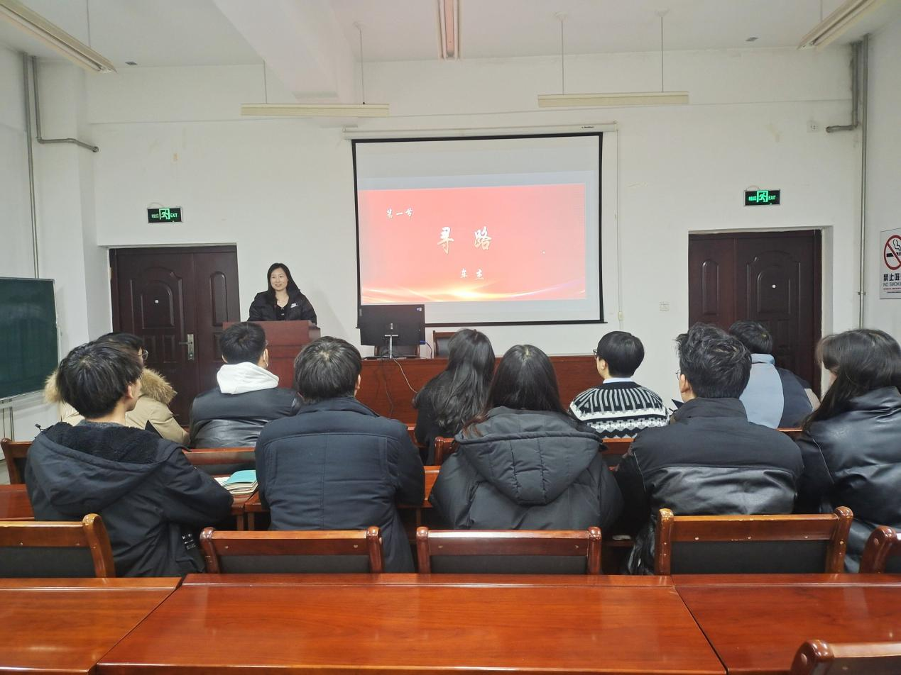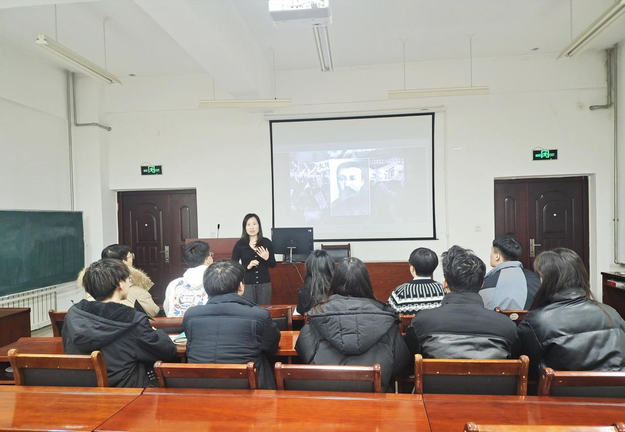 宣讲会伊始,牟杰老师从一张中国近代史上著名的时事漫画切入,展现了百年前中国水深火热的局势,引出本次会议的主题。首先讲述了李大钊为探寻中国发展之路做出的努力和牺牲,随后进行朗诵歌曲表演:青春,进一步加深同学们的印象。最后,牟杰老师讲述了陈望道与《共产党宣言》,让同学们对中国共产党革命理论的发展感悟更透彻。