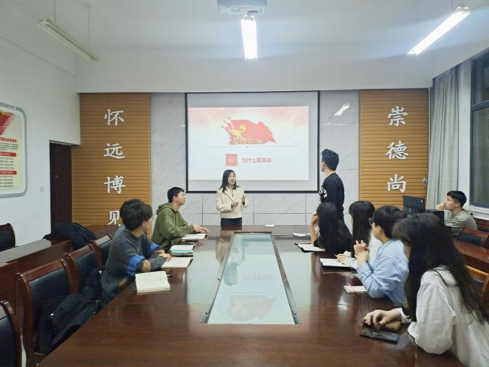 宣讲会伊始,牟杰老师从什么是中国共产党、为什么要革命、中国共产党的初心和使命和争做有为的新时代大学生四个大方面围绕“传承红色基因,坚定理想信念”这一主题向大家进行宣讲。随后,牟杰老师组织参会同学观看有关主题的视频,带领大家加强对中国共产党的有关知识进行学习和了解,引导同学们应该始终坚持中国共产党的领导,学习党的初心和使命,争做有为的新时代大学生。最后,同学们积极讨论了应该如何争做有为的新时代大学生,并制定了相应计划,学习中国共产党的精神,争做有为的新时代中国青年、新时代大学生。