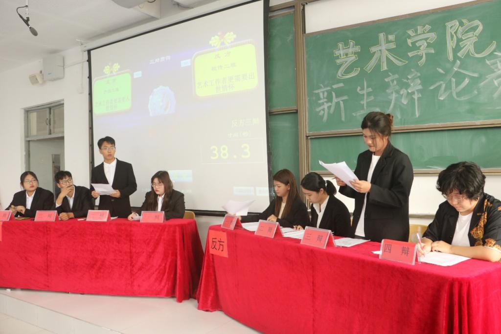 初赛分为三场,共有六支队伍参赛。围绕“商业性能否增加电影艺术价值”等辩题开展辩论。辩手们在立论,驳立论环节中思路清晰,观点明确,现场气氛迅速升温。在随后自由辩论环节中,双方辩手针锋相对,良好的风范、出色的口才、敏捷的思维赢得观众的掌声。经过激烈角逐,环艺一班、环艺二班、产设二班晋级复赛。