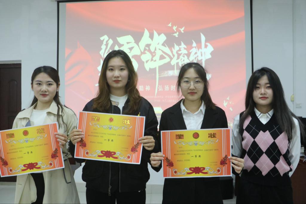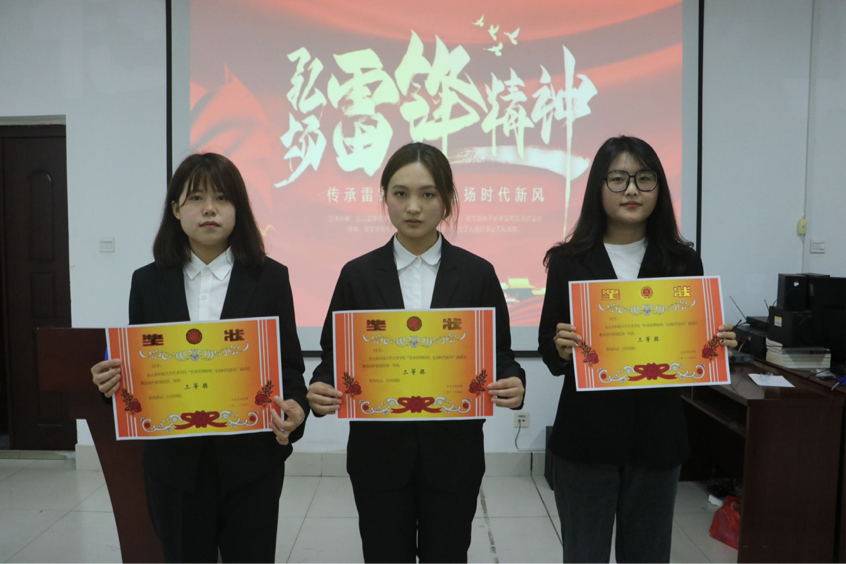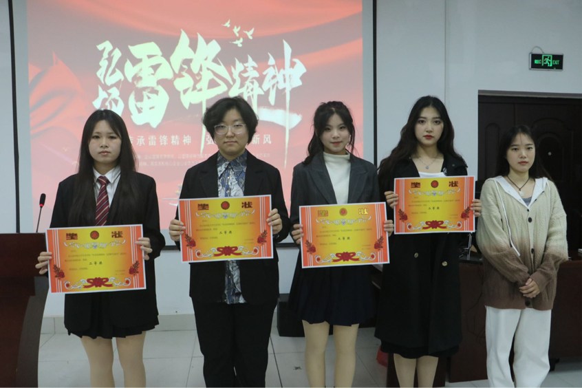 比赛过程中,参赛选手依次上台演讲,围绕演讲主题从理想信仰、时代使命、青年责任等角度阐释了自己对雷锋精神的理解。通过讲述身边的道德模范和先进典型展现了作为新时代大学生应如何以实际行动践行雷锋精神。他们嘹亮的声音、激昂的语调,自信的姿态,展现了当代青年积极向上、坚定奉献、自信从容的精神状态,赢得了现场的阵阵掌声。同时,台下的各位评委根据评分细则严格为每一位选手亮分,并提出宝贵的意见与建议。最终,王怡冉,张祎梁,张馨咨同学获一等奖;刘天尧,刘阳,庄姝涵,田雨薇同学获二等奖;孙欣甜,许珂凡,王乐心,李文琪,刘灵慧同学获三等奖。