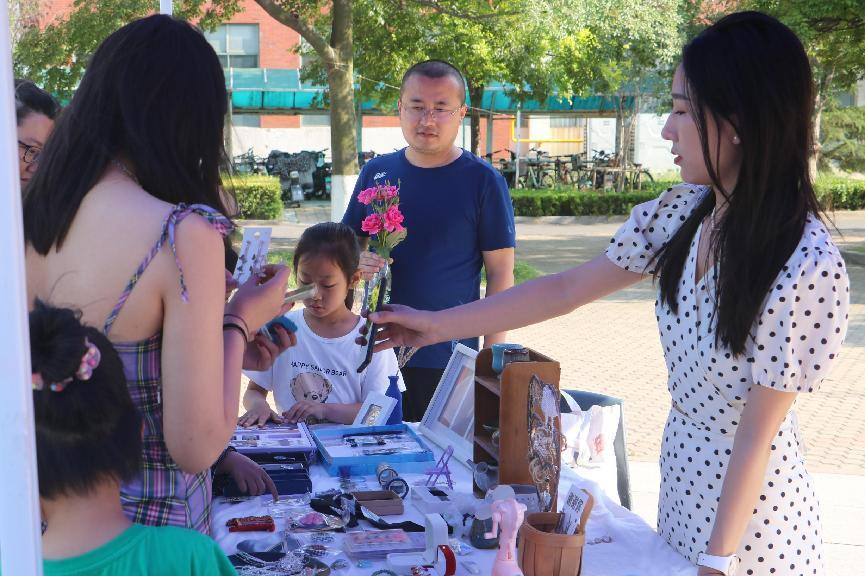 本次艺术市集包括拍卖区、体验区、发布区和展览区四大展区。活动期间,发布区对市集中的好作品、好产品进行发布推荐,以供顾客进行好物挑选;拍卖区以拍卖的方式由提供好物的学生出底价,吸引顾客竞拍,最终实现成交。手工制作的精美手链、艺术学子自行设计的文创产品、手工制作的精美手链等商品应接不暇;体验区内设立涂鸦小铺、灯光画影、女孩心饰等艺术体验摊位,同学们可现场参与黏土制作、传统发钗制作、植物拓印、丝巾领带教学、光影实验等各类体验;展览区内的陶瓷制品古雅温润,文创作品琳琅满目,漆器工艺品细腻精美,每件作品都以有情、有致的方式呈现出来,展现着其独特的生命力。不同的灵感与创意精彩纷呈,每个摊位都以有情、有致的方式展现着其独特的职业魅力与体验趣味。活动受到广大师生的热情欢迎,现场气氛热闹纷呈,参与师生达300余人次。