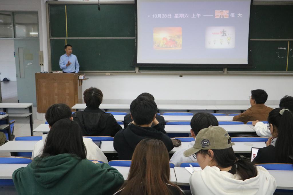 讲座依始,马鹤就聚焦提升“三力一度”和加强大学生班(团)建设展开专项培训。他指出,全体学生干部要紧紧围绕党政中心工作,讲政治、重创新、抓落实、求突破,着力提升组织力、引领力、服务力和大局贡献度,并通过具体案例就相关内容提出具体要求。随后,他讲解了以“三位一体”为代表的党团基本知识和素养,并通过“是什么,为什么,怎么做”三大基本问题引出了学生干部工作作风和工作素养培养的内容。其中,他用现身说法的方式拉近了师生距离,学生干部们也进行了积极的互动。讲座最后,马鹤针对学生干部自信心不足,表现能力需要提高等问题做出指导,勉励学生干部们开阔视野,提升境界,增强本领,推进发展,他表示:“青年干部要敢想敢干,发挥带头作用,只有作为才能有地位”。