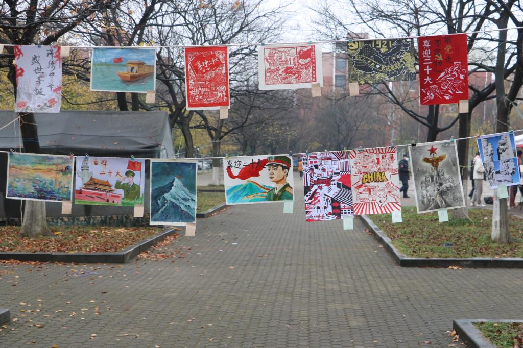 活动开始前,工作人员准备好活动所需要的材料并完成了本次活动的宣传工作。随后,同学们手持画笔,神情专注,将红色基因元素生动地呈现在画卷上,绘制出一张张生动传神、极具感染力的画作,抒发了对党和国家的诚挚热爱。画作中威严的天安门和火红的旗帜象征着中国共产党为人民谋幸福的不懈追求,朵朵祥云与林立的高楼,代表着人民对美好生活的向往。通过一幅幅的画作,展现出党的百年光辉历程,追忆革命峥嵘岁月,体悟先辈矢志不渝、艰苦奋斗的红色精神。活动结束后,同学们纷纷表示,要勇做走在时代前列的奋进者、开拓者、奉献者,为实现中华民族伟大复兴的中国梦不断开拓创新、奋发有为。