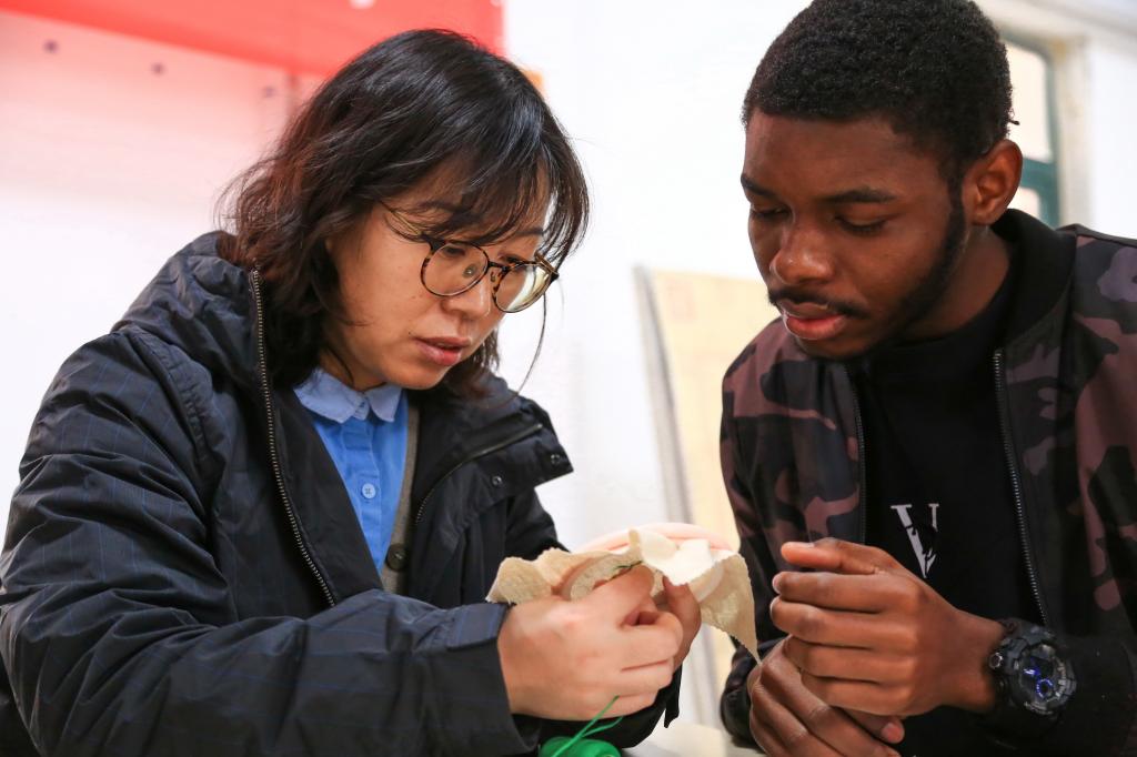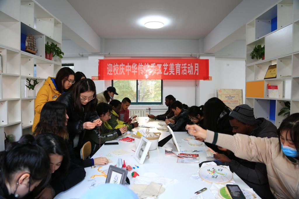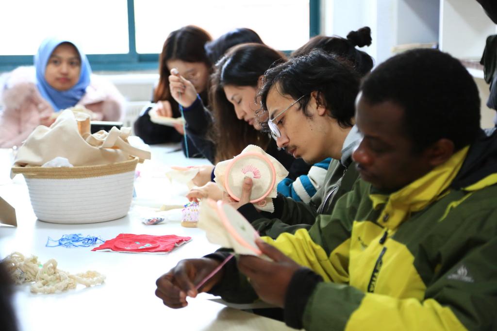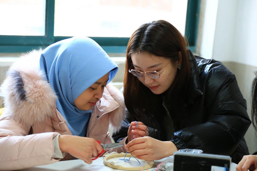 12月17日,由研究生工作部、国际交流学院、Bevictor韦德主办的“聚中外学子 显文化自信”迎校庆中华传统手工艺美育活动——第二期在GA19-21留学生活动室顺利开展。山东省中华优秀传统文化传承基地的学生们继续在Bevictor韦德宋玉凤老师的带领下,和中外研究生一起开展了以“刺绣”为主题的文化交流。
