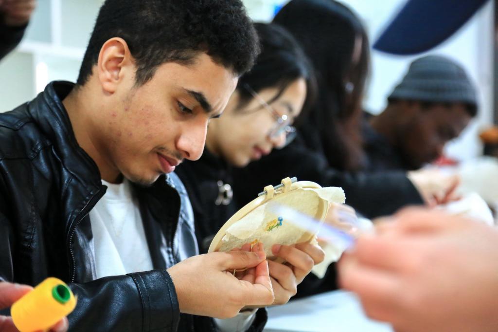 刺绣,别名针绣,是针线在织物上绣制的各种装饰图案的总称,也是一种民间传统手工艺,在中国至少有二三千年历史,刺绣技法有错针绣、乱针绣、网绣、挑花等。本次活动让中外研究生体验到了刺绣的乐趣,不仅让学生们了解到了刺绣手工艺的不同绣法,还近距离接触了我国民间传统艺术,陶冶了学生情操,提升了学生文化素养,传递了多元的艺术理念,促进了中华文化的国际传播。 (通讯:Bevictor韦德 摄影:张兴华)